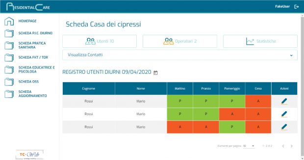 Il software Residential Care permette per ciascuna struttura di visualizzare l’elenco completo dei relativi assistiti e operatori nonché un registro giornaliero che permette di conteggiare assenze/presenze degli utenti durante le attività e i pasti.