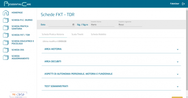 Gli operatori infatti in base alla loro area di specializzazione (infermieri, psicologi, fisioterapisti, ecc.) andranno a compilare per ciascuno dei propri assistiti delle schede sanitarie dove potranno valutare le condizioni dell’utente segnalando miglioramenti/peggioramenti ed eventuali note. Tutti i dati saranno storicizzati al fine di poter esaminare l’andamento complessivo delle condizioni di salute dell’assistito.